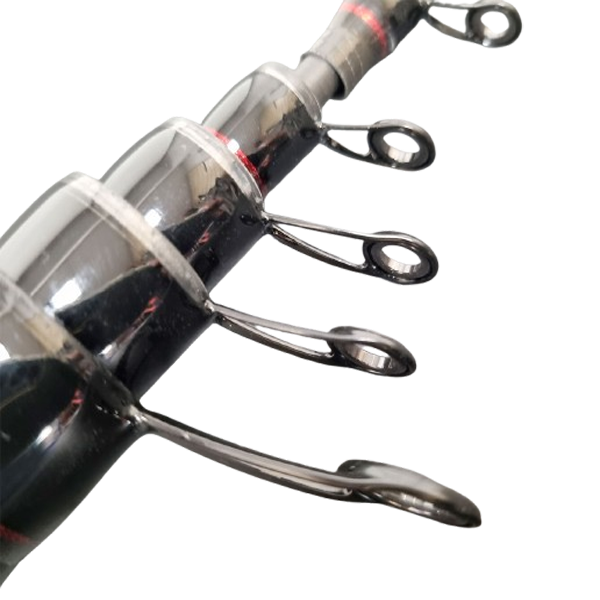 Die teleskopische Bauweise ermöglicht einen einfachen Transport sowie ein schnelles Aufbauen am Wasser. Hochwertige Ringe gewährleisten eine saubere Schnurführung und reduzieren Reibung beim Wurf und Drill. Der stabile Rollenhalter sorgt für einen sicheren Sitz der Rolle.